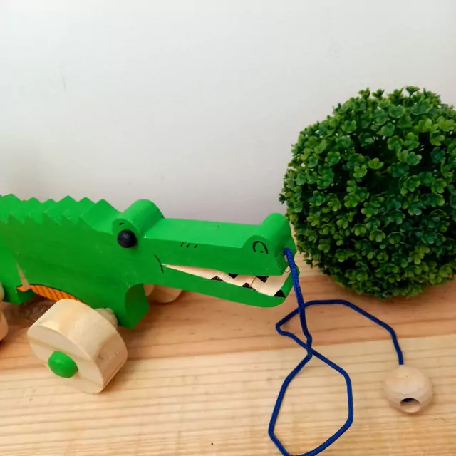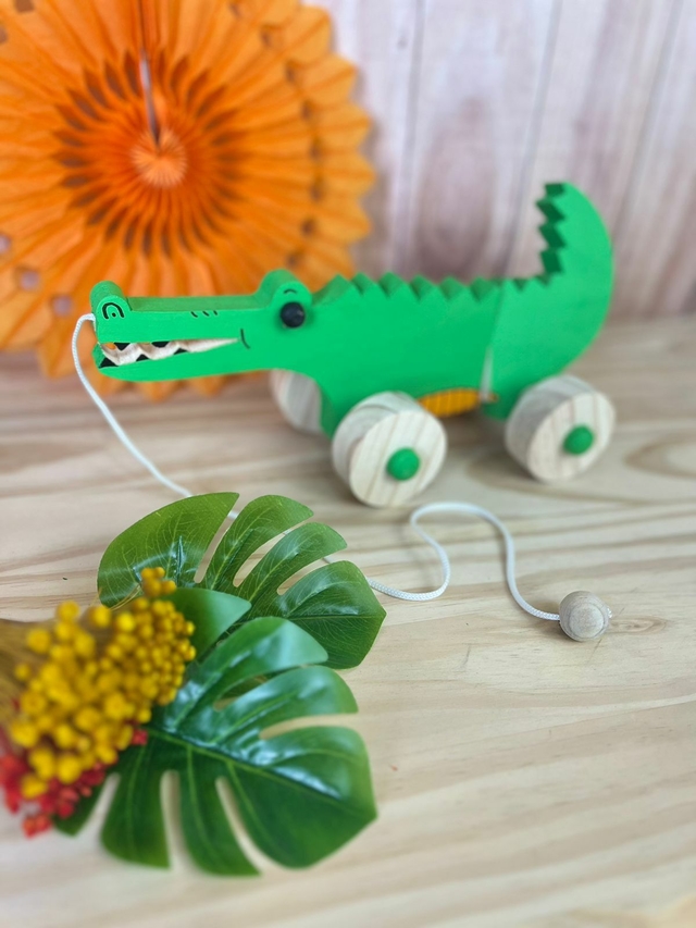 Nosso Jacaré de puxar dependem da força da criança e são ótimos para estimular o equilíbrio e o fortalecimento dos músculos.