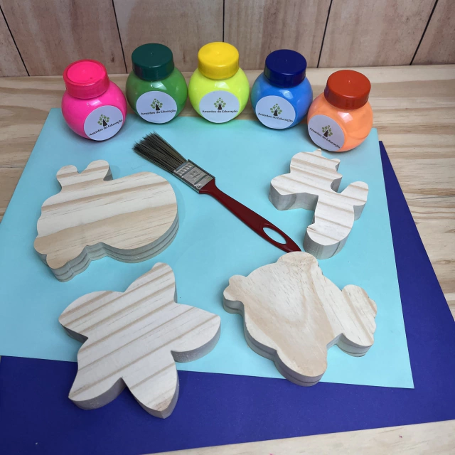 5 tintas (rosa, amarelo, verde, azul, laranja)